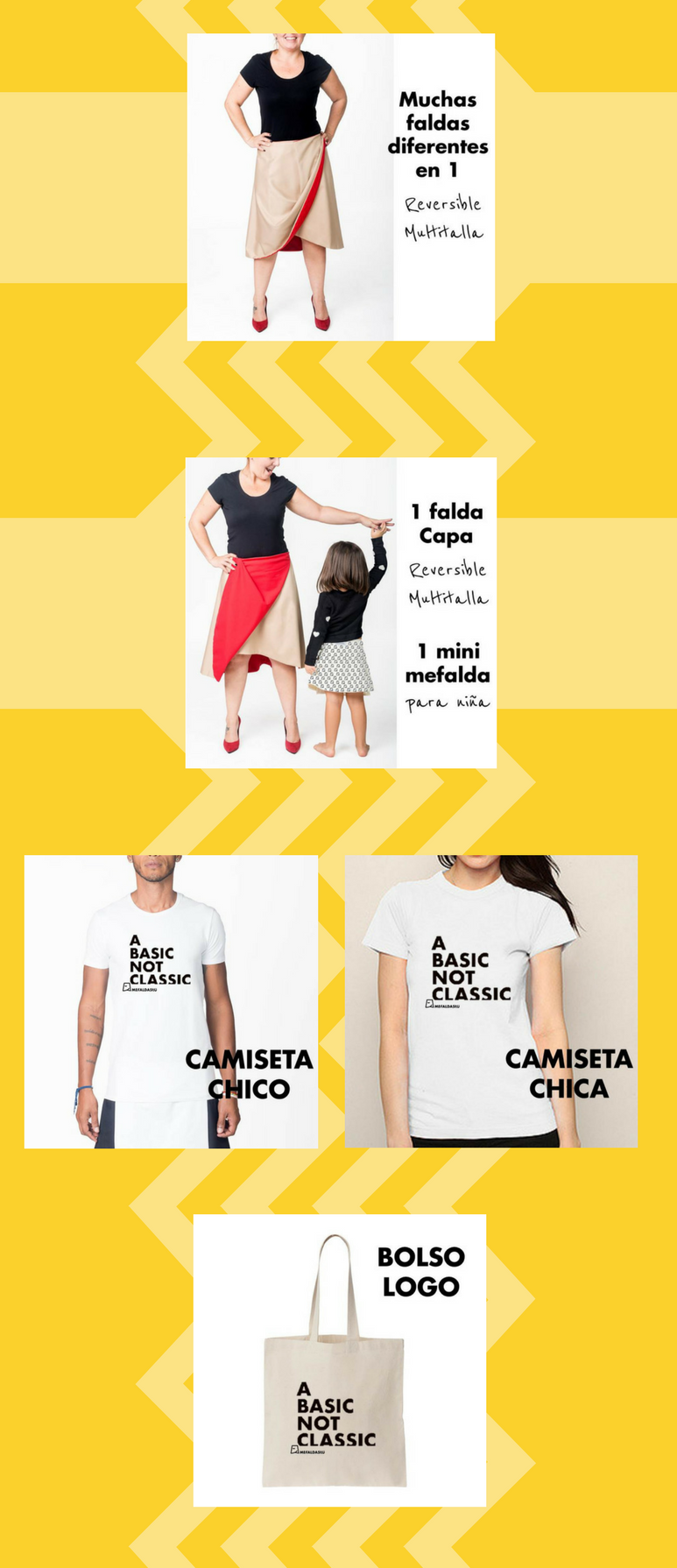 The mefaldas are garments with a slow philosophy (sustainable fashion) and our desire is to continue maintaining it. With your contribution we can do much more... and much better. Our goal is that you know the concept of MEfALDAStÚ. We need people who support us and who fall in love with a type of design that is not subject to trends or seasonal collections. For real people, who get fat and lose weight, and nothing happens. To those who change their bodies and their lives, but who still dare to be and dress in a different way, with very original skirts that will always accompany them.
