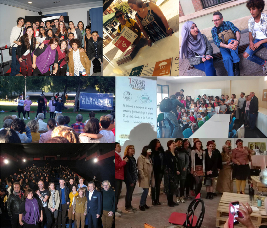 Además trabajamos con otros profesionales del ámbito creativo (La Casa de la Imagen, Amadeus Aula Creativa, Con Otra Mirada, Callejeatro, Barricarte, Madrugada Producciones...) colectivos y asociaciones vinculados a la creatividad (Ariel, El Hombre que fue Jueves, Cancióndeautor.es, Nota Alterna...) artistas plásticos, músicos, cómicos, creativos, festivales y encuentros y espacios de arte... al final de éste documento se dispone de una lista completa con nuestras colaboraciones, proyectos y colaboradores en éstos casi tres años de trabajo.