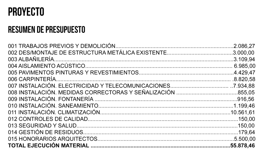 Como se observa en el diseño y presupuesto, la reforma que planteamos es la más simple posible dentro de la multifuncionalidad del espacio.